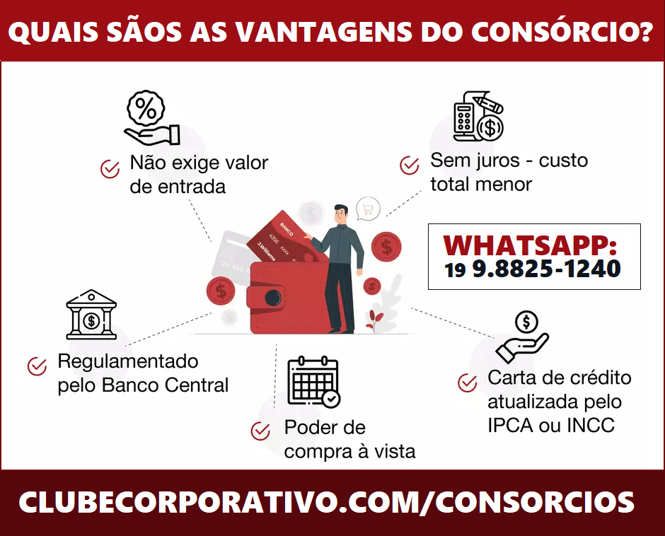 A economia. No consórcio você não paga juros, apenas uma taxa de administração diluída, o que preserva seu patrimônio.
